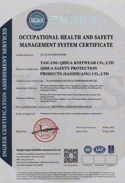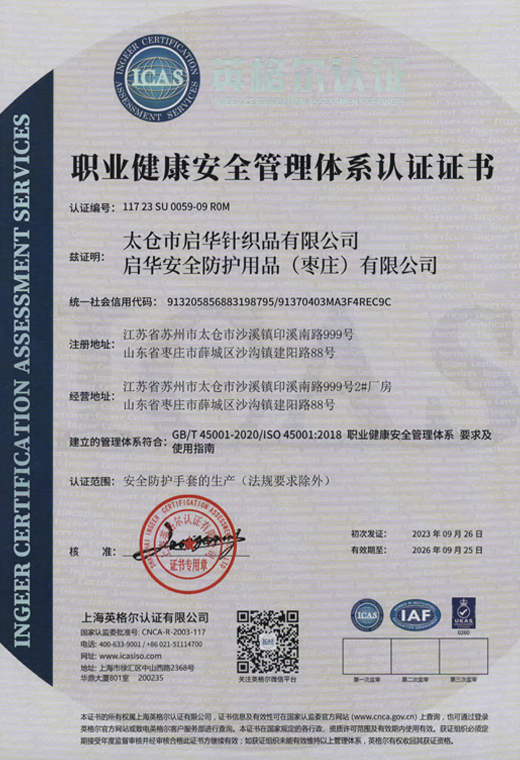 職業(yè)健康安全管理體系認(rèn)證證書