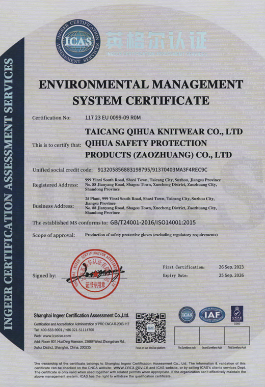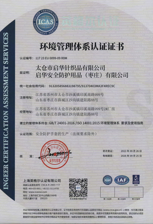 環(huán)境管理體系認(rèn)證證書